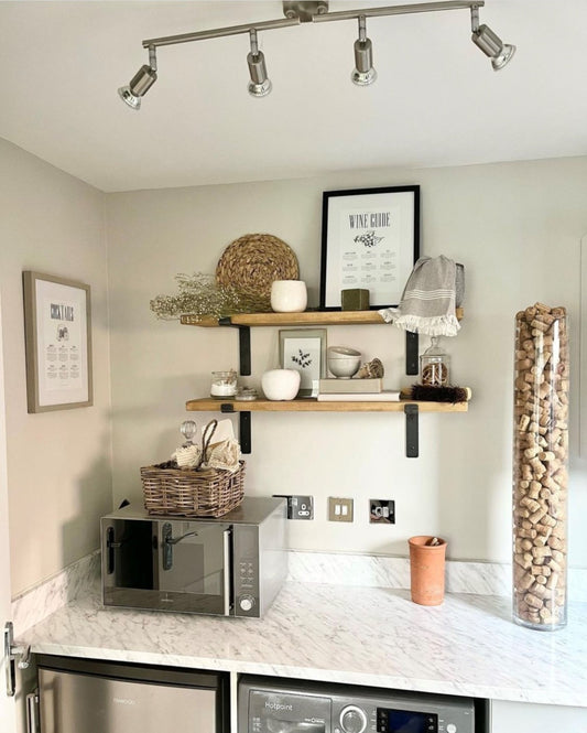 Set of 2 | Rustic Wooden Wall Shelves with Industrial Style Bracket | 22.5cm depth