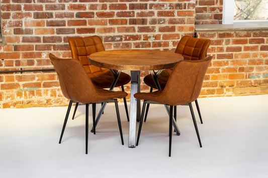 Industrial Dining Table with Trapezium Leg - Smoked Oak