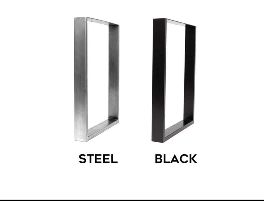 The wood top is planned down and sanded to a flat smooth touch finish, but we make sure to keep as many of the natural wood features as possible, which might include knots and unique grain patterns meaning each table will be truly unique. We then add a hard wax oil finish that protects the wood and brings out all its natural features. The legs come in two colour options, Black or rustic which is a raw steel finish.