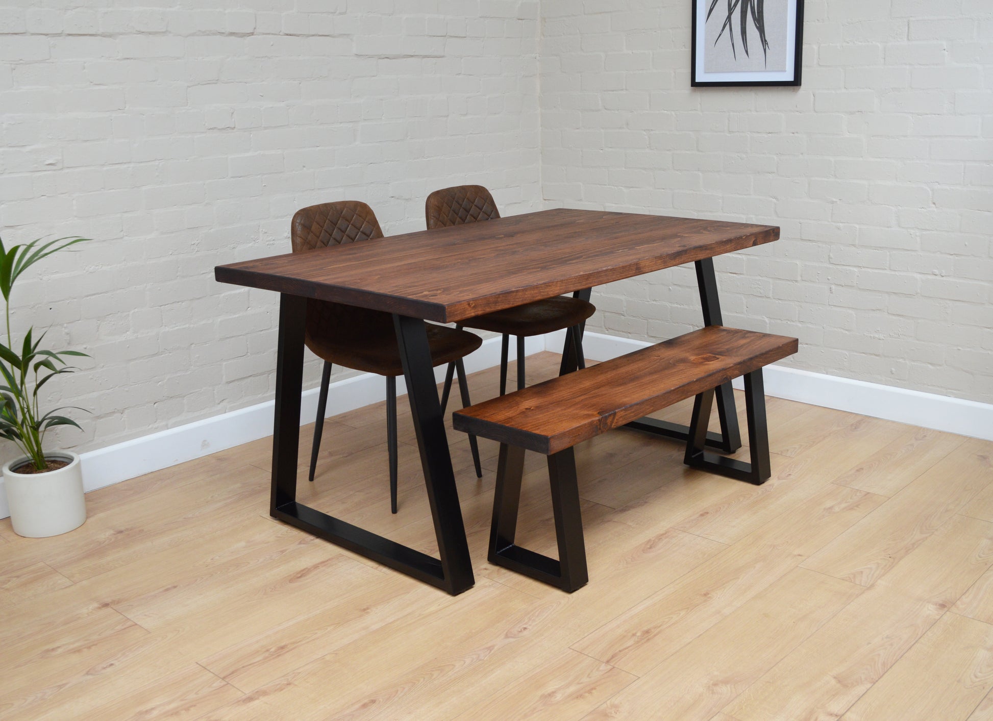 Dark Oak Industrial Dining Table with Trapezium Leg
