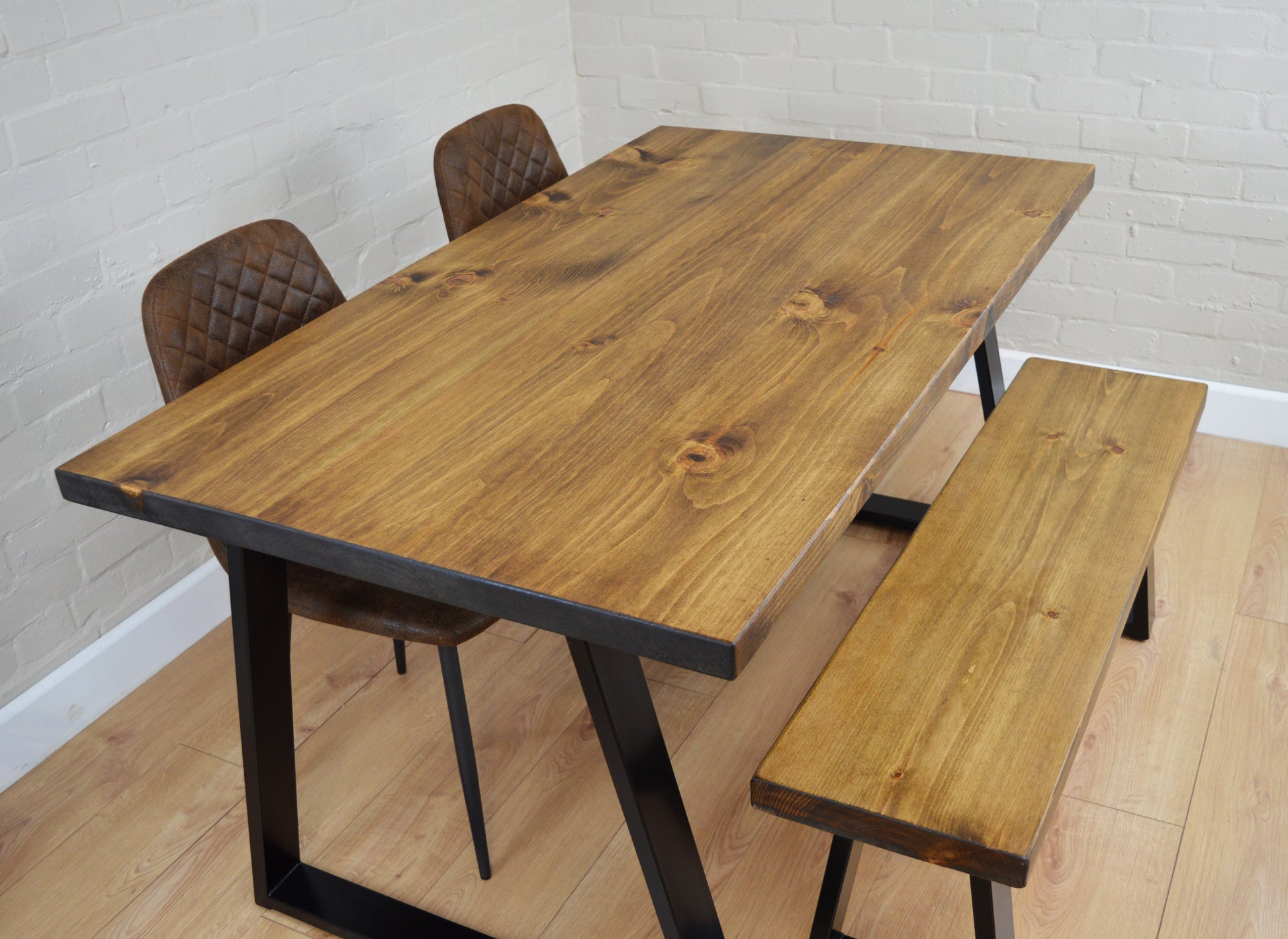 To create this table we have used a combination of pine wood and steel Tube creating this stand-out rustic/industrial style table. Like all the wood we use, the pine is Sustainably sourced and kiln-dried to the moisture content of the average household to minimize movement in the wood. For the legs, we have used a 75mm x 25mm steel tube that has been welded together creating a beautiful and strong frame that will last a lifetime.
