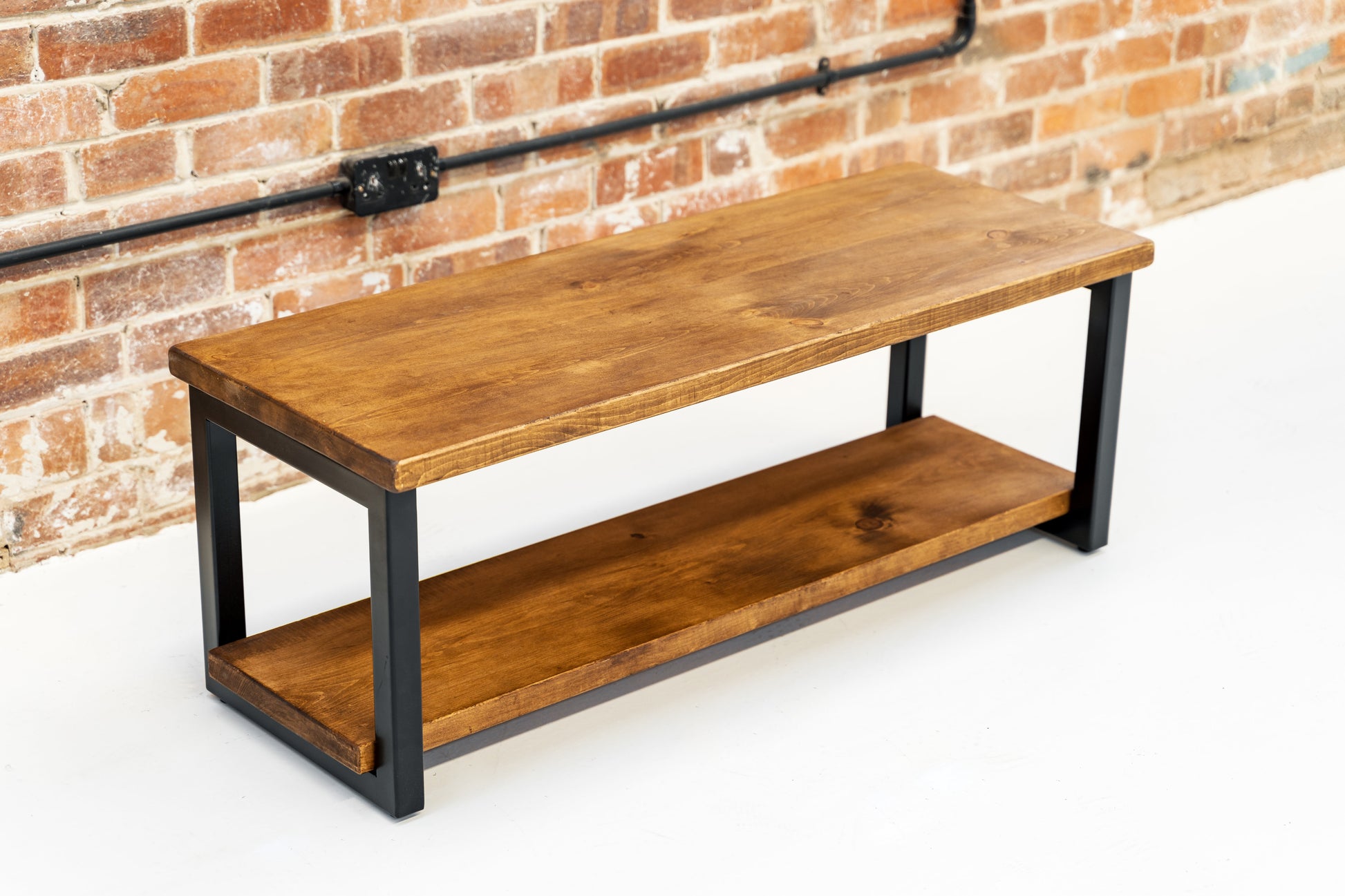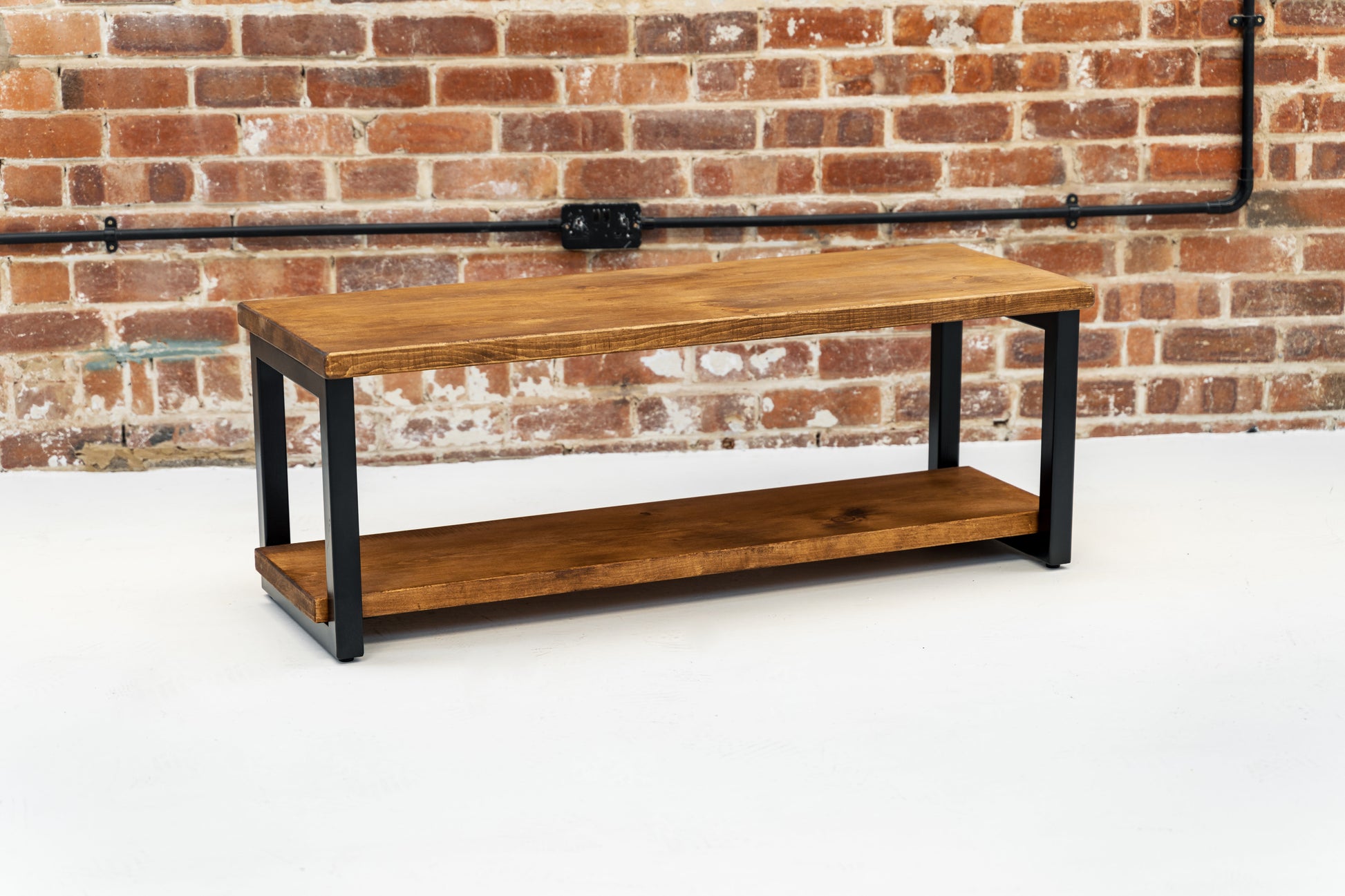 Our industrial-style Tv unit is handmade to order using a combination of solid wood and metal frame. The pine used is sourced from environmentally sustainable forests, which is then kiln-dried to the moisture content of the average household. This process is crucial when using wood on interior furniture as it minimizes any movement in the wood. The top is planed and sanded to a smooth touch finish, but we make sure to preserve each piece's rustic characteristics which may include splits, knots, and unique grain patterns. Once sanded, a wax finish is then applied to offer protection to the wood, leaving a stunning finish.