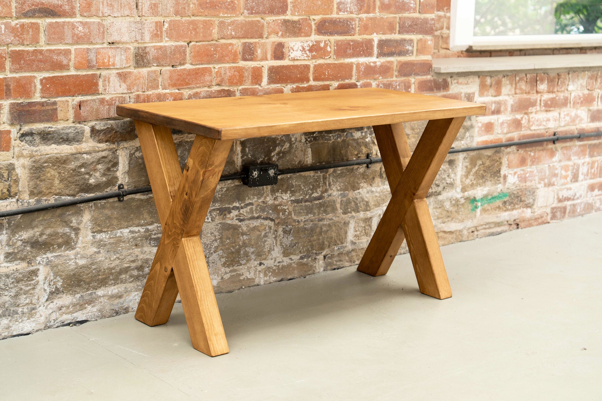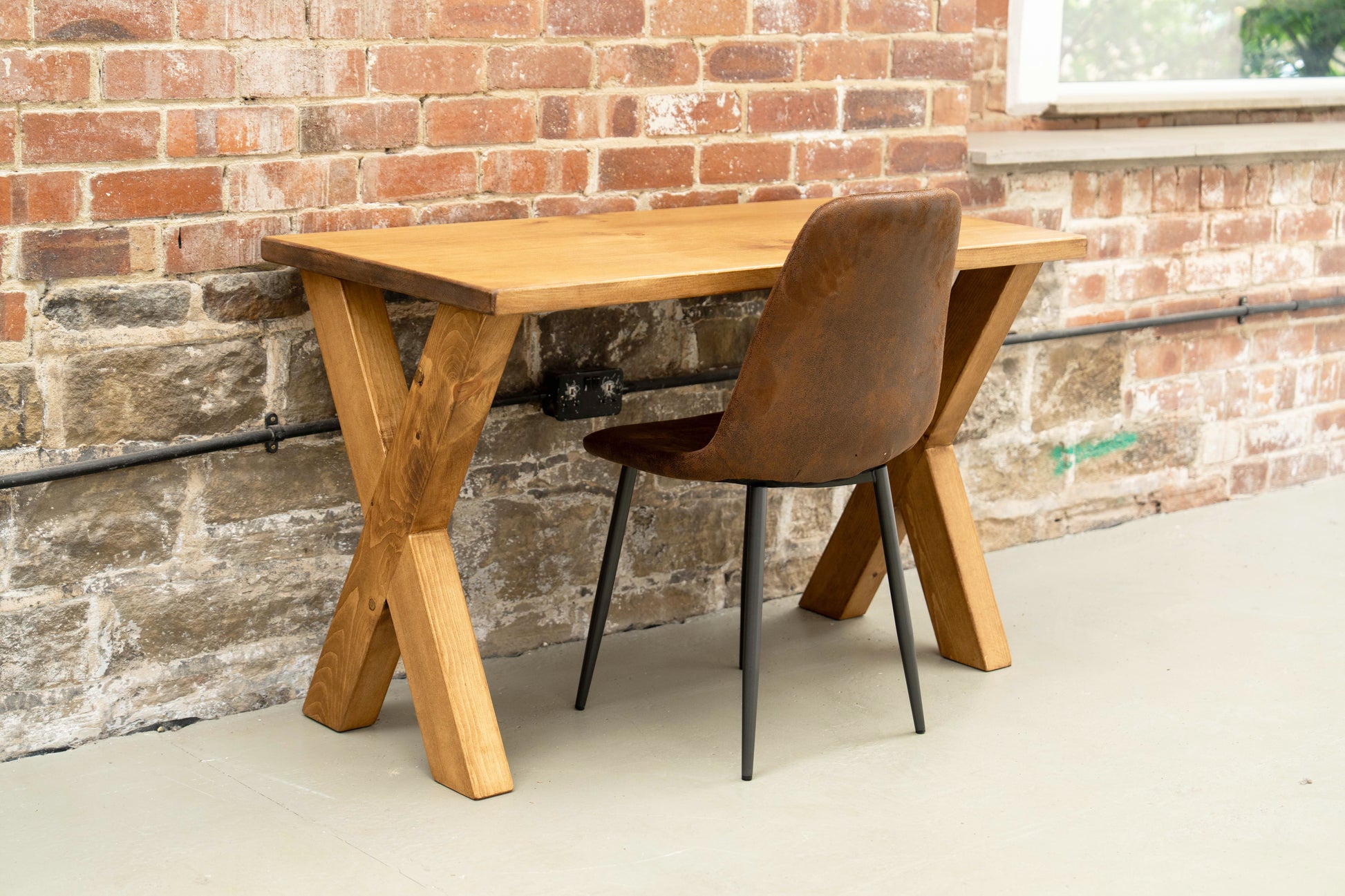 Our chunky handcrafted desk is made to Order. Multiple Lengths and finishes are available.
