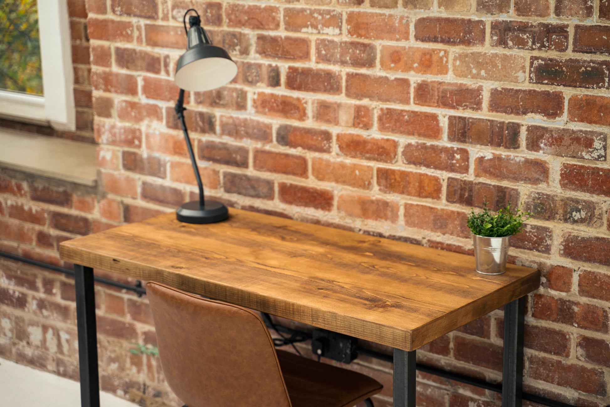 Our Rustic Handcrafted Industrial style desk is made to Order. Multiple Lengths and finishes are available.