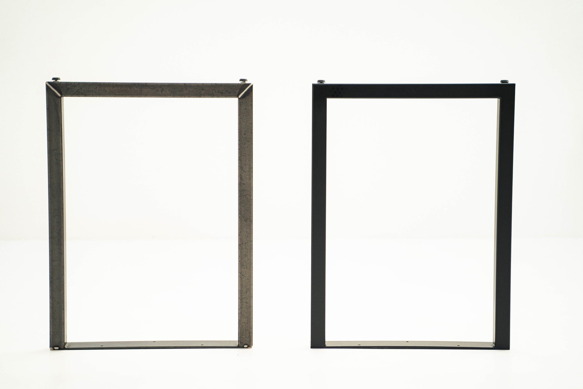 The working height is approximately 75 Centimeters which is the standard height for a desk. The legs are made from hollow box section steel that is welded together creating a robust frame built to last a lifetime. The steel legs are available in two finish options, rustic or black. The rustic has a clear lacquer coat which keeps the raw industrial-styled look but offers protection to the steel and the black option is painted black. Adjustable feet are fixed to the bottom of the legs eliminating any potential wobble on an uneven floor.