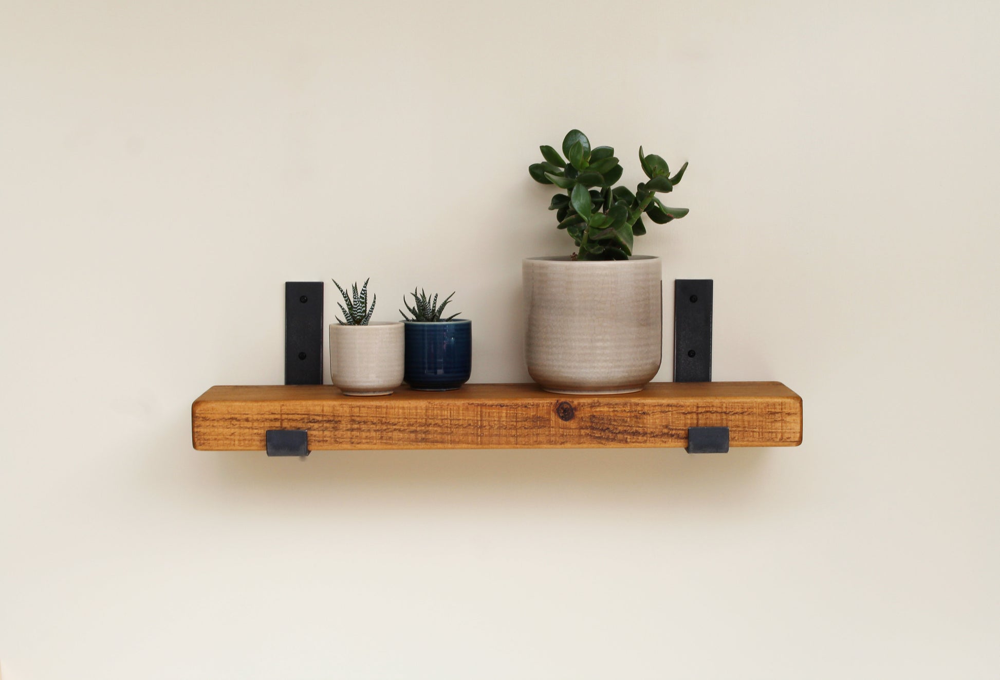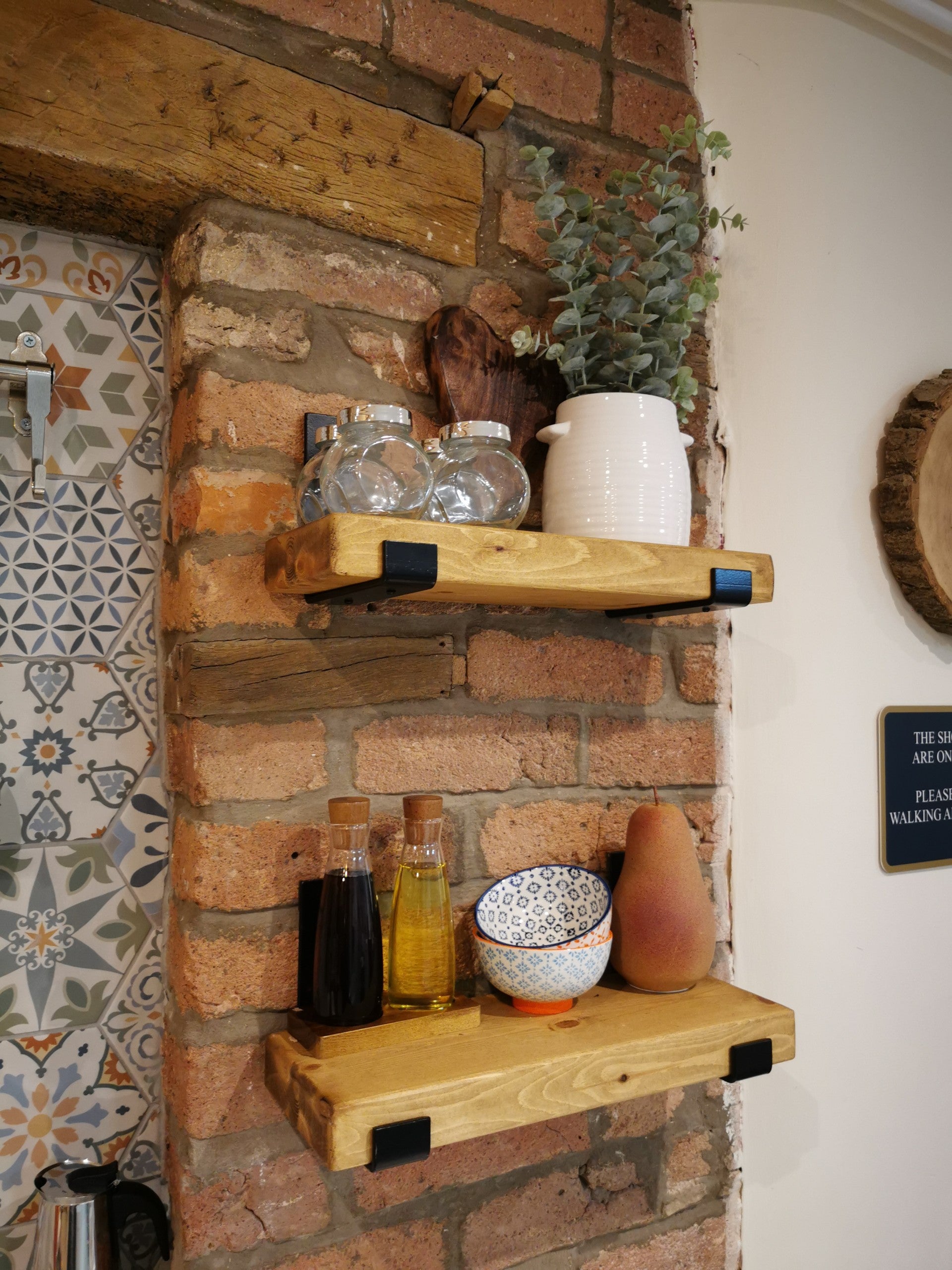 Rustic solid wood wall shelves, wall brackets, and fixings included.