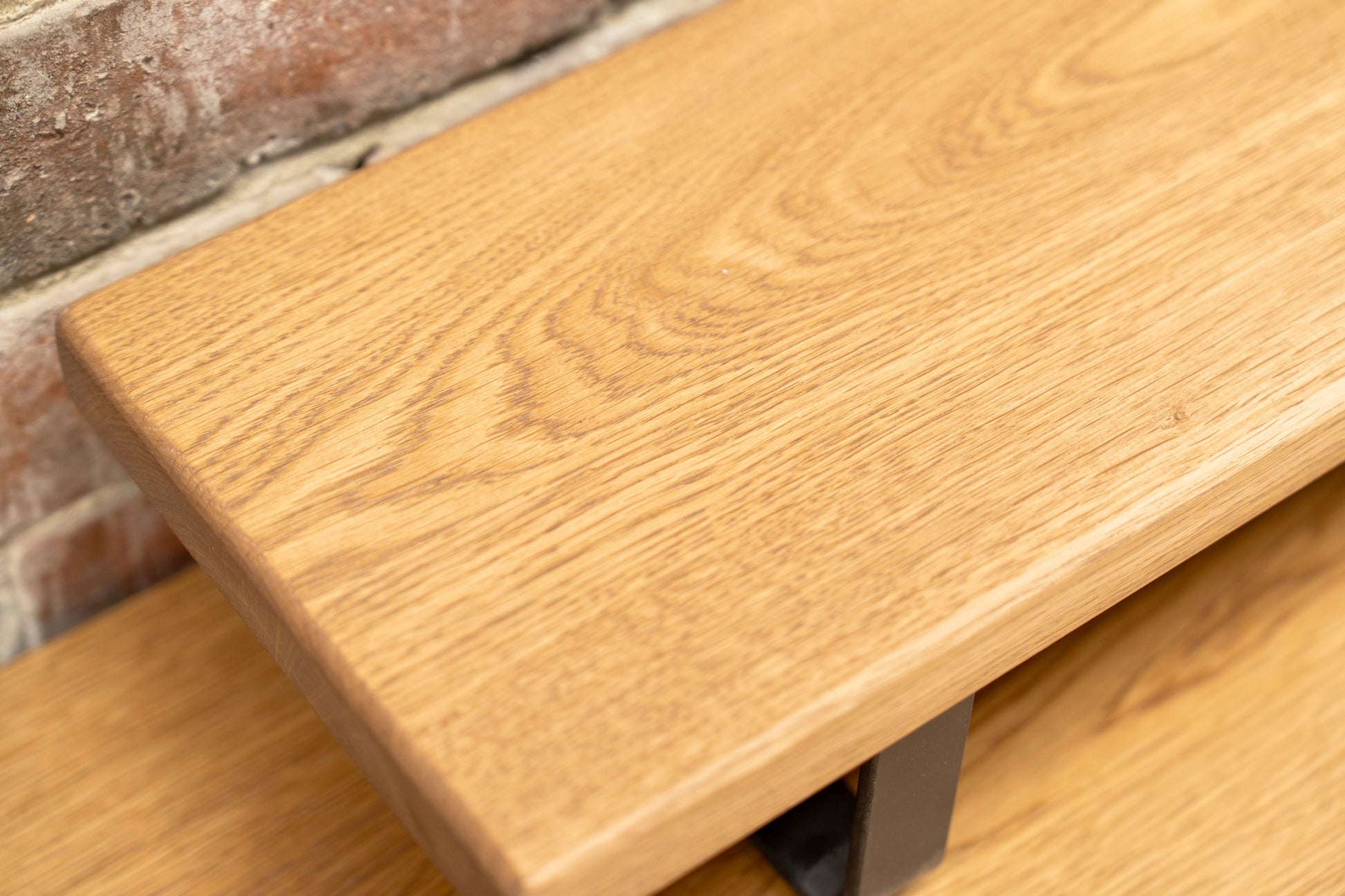 The Oak is sanded to a smooth touch finish, but we make sure to preserve the rustic characteristics each piece has which will include, splits, knots, and unique grain patterns. Each table shelf is hand waxed with a natural hardwax oil finish. The application of oil intensifies the grain pattern whilst protecting the pine with a water-resistant finish.