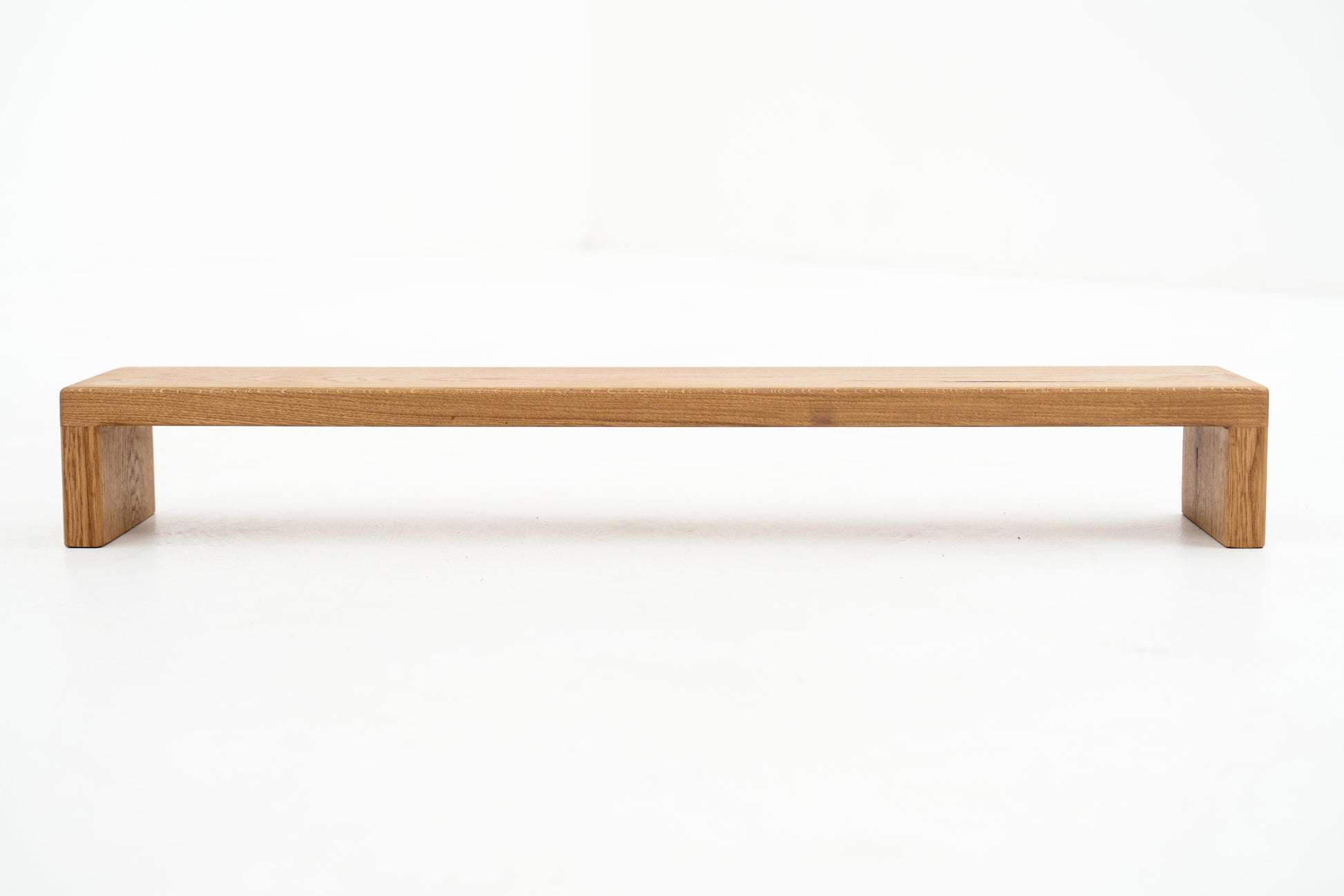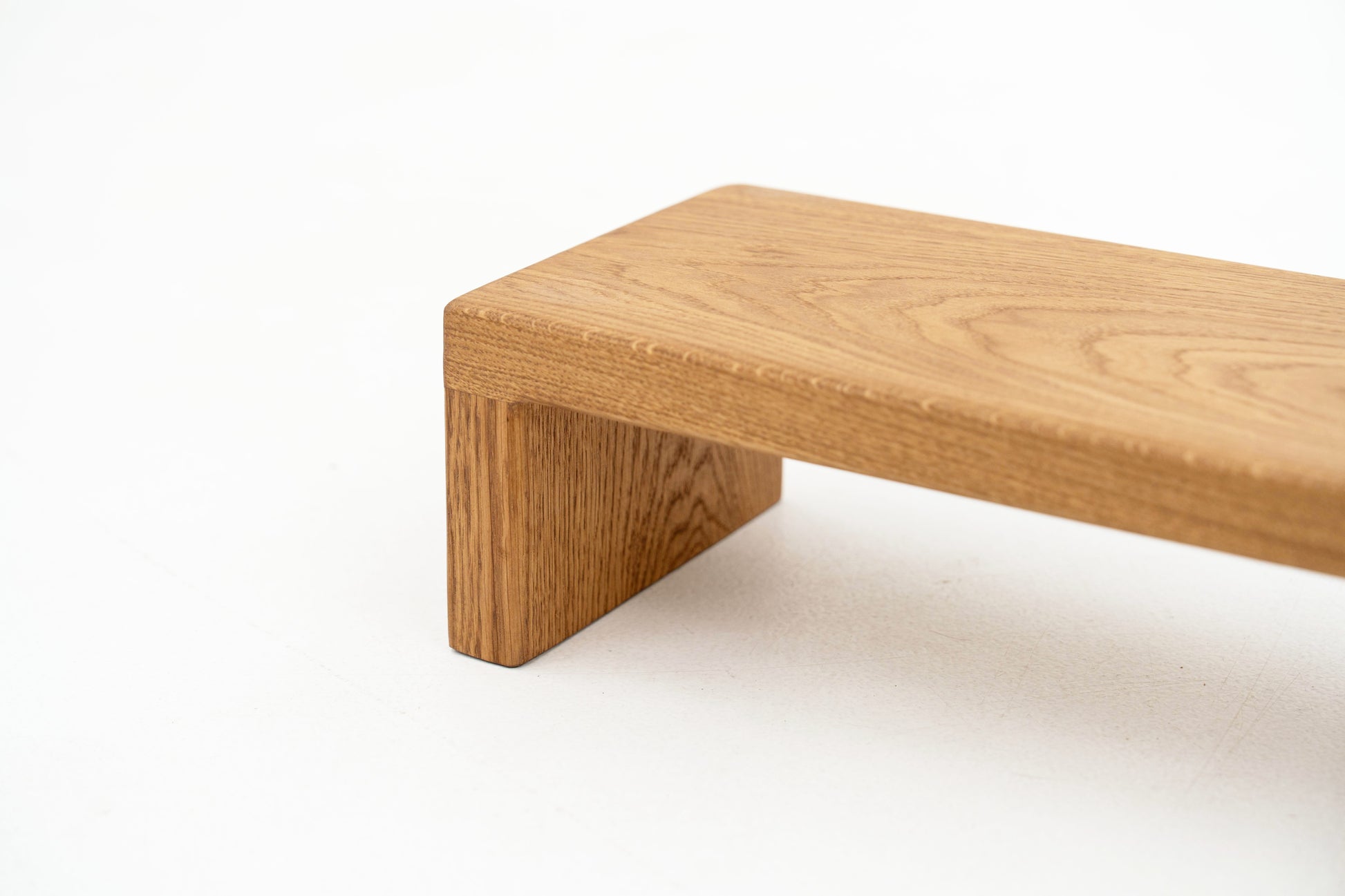 Our solid Oak monitor stand is handmade to order from high-quality european oak that is sourced from environmentally sustainable forests. The oak is then kiln-dried to the moisture content of the average household. We use the same wood and finish as on our desks to ensure a perfect match.