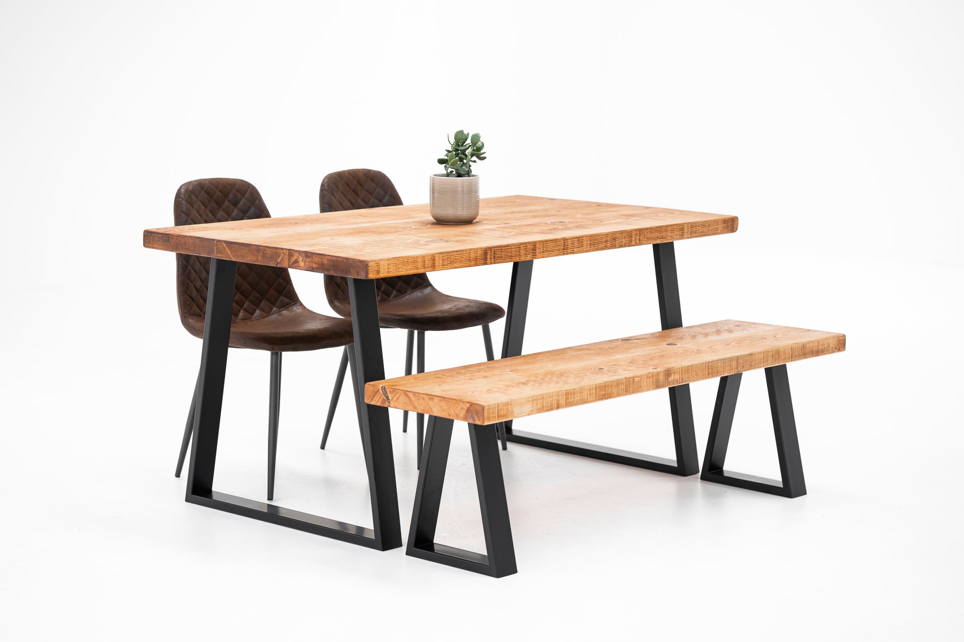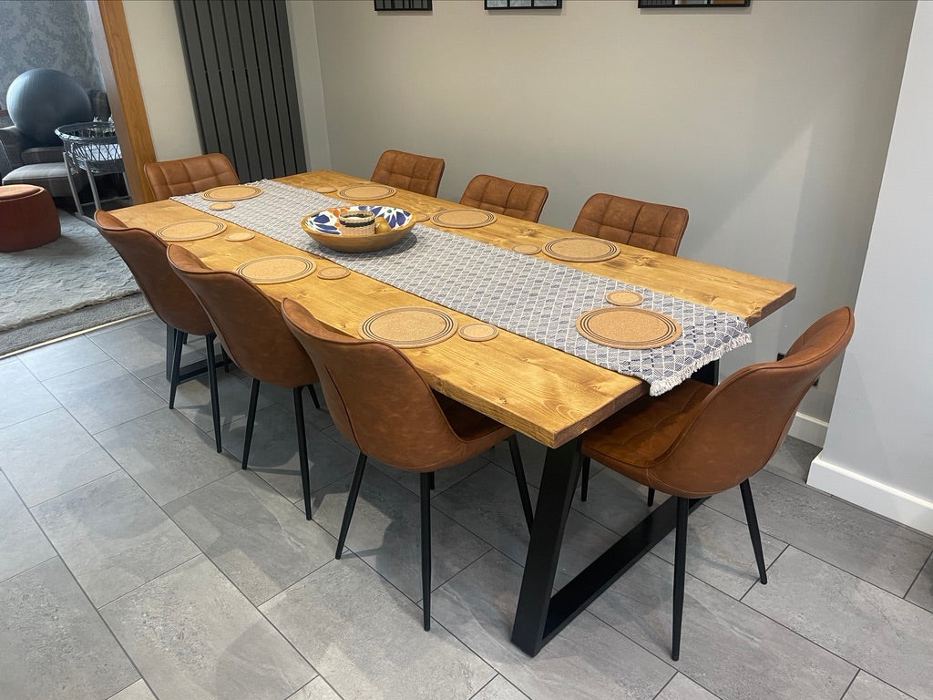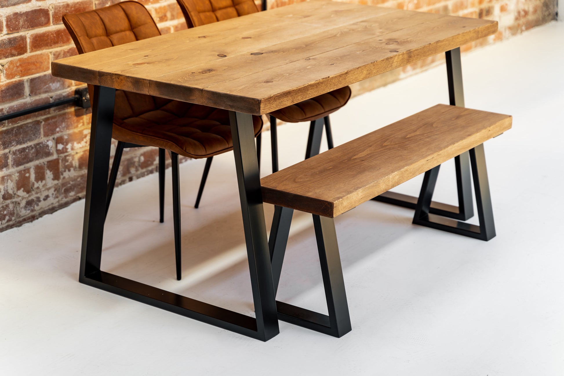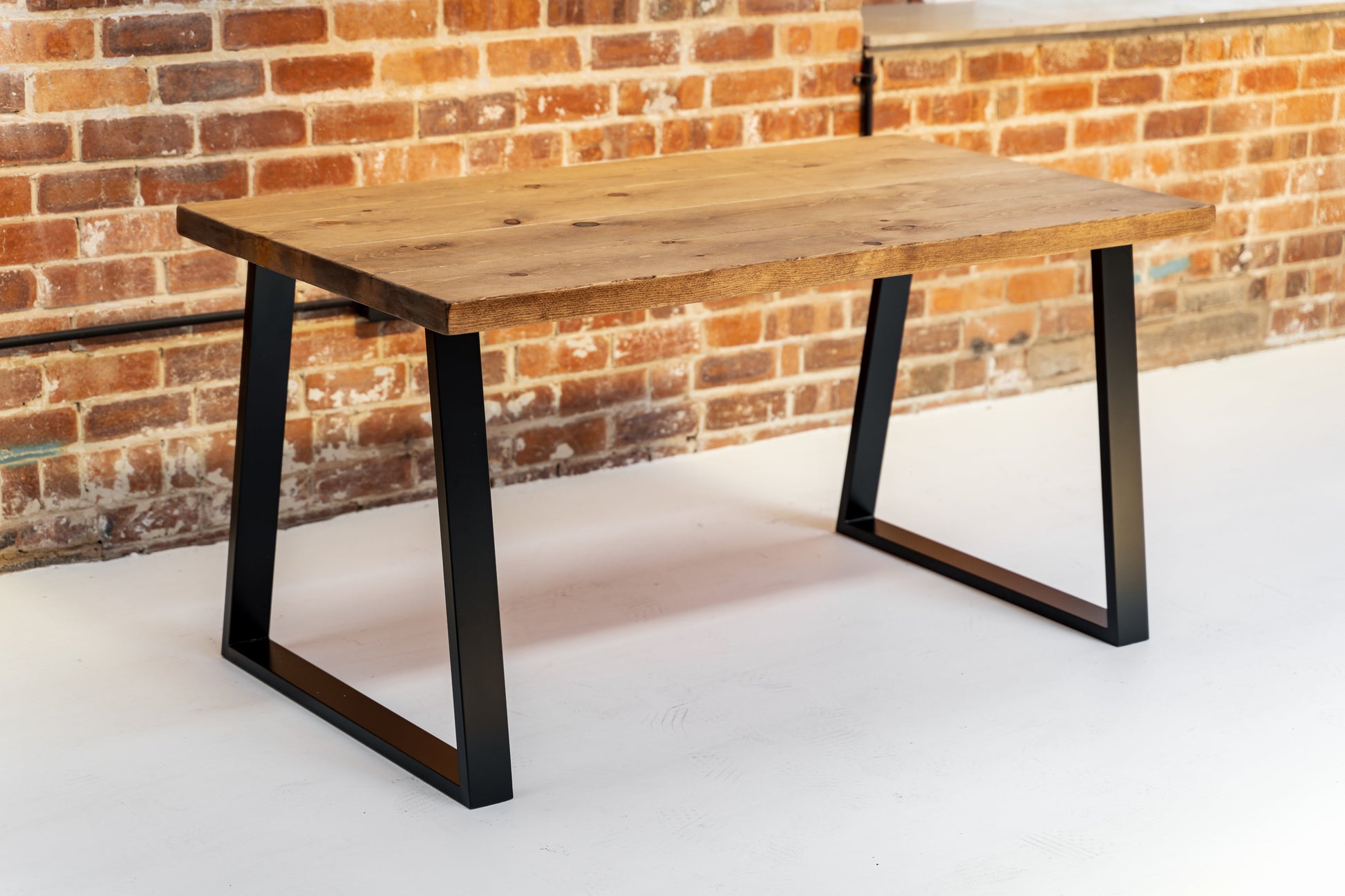 To create this table we have used a combination of pine wood and steel Tube creating this stand-out rustic/industrial style table. Like all the wood we use, the pine is Sustainably sourced and kiln-dried to the moisture content of the average household to minimise movement in the wood. For the legs, we have used a 75mm x 25mm steel tube that has been welded together creating a beautiful and strong frame that will last a lifetime.
